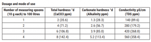 כדי להעלות קשיות ב 4 ° dKH, יש להמיס כף מדידה (10גרם) ב- 100 ליטר של מי אוסמוזה.